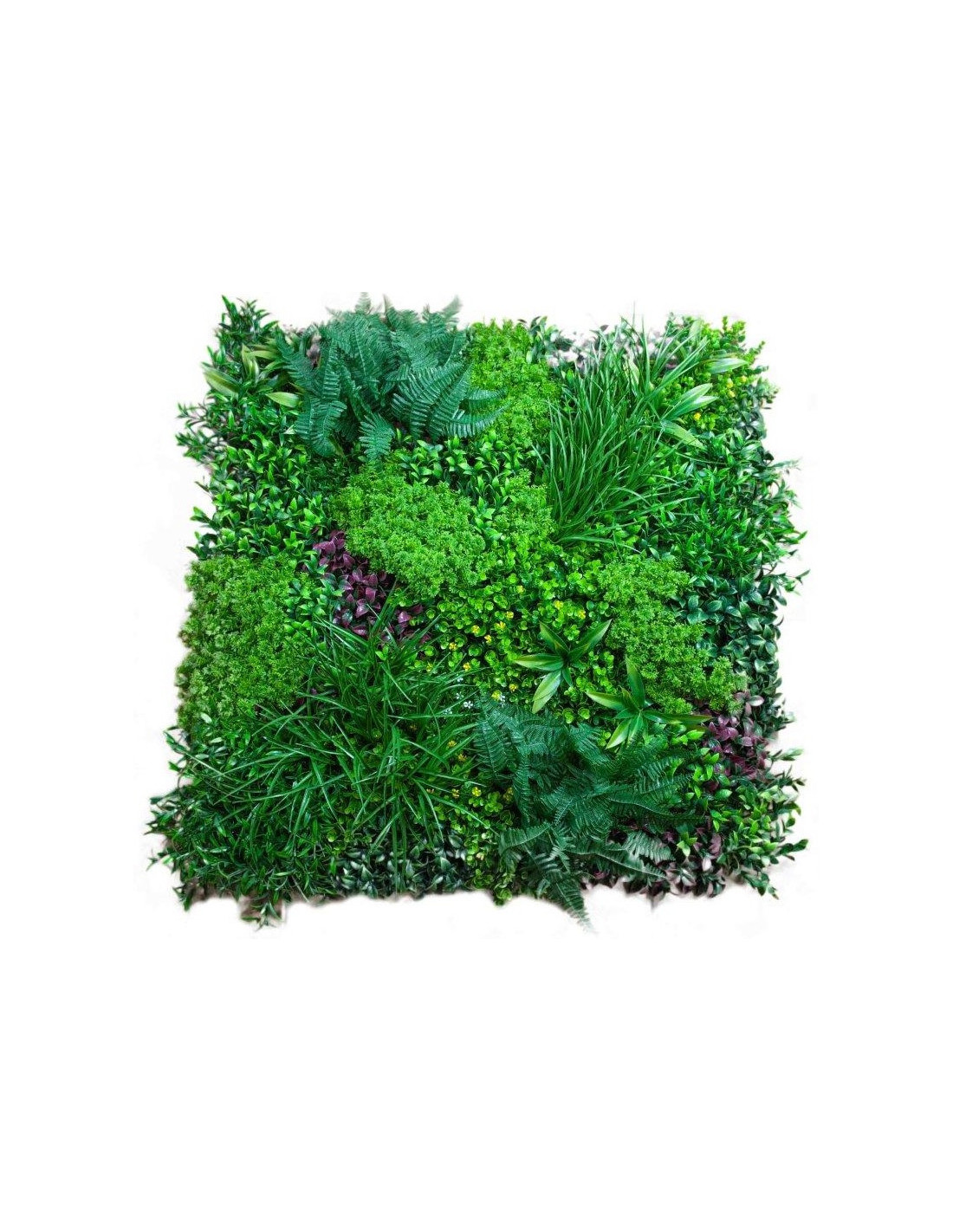 Jardí vertical de 100x100cm. Fàcil de penjar i bonic efecte visual. Barreja de plantes artificials frondoses barrejades.