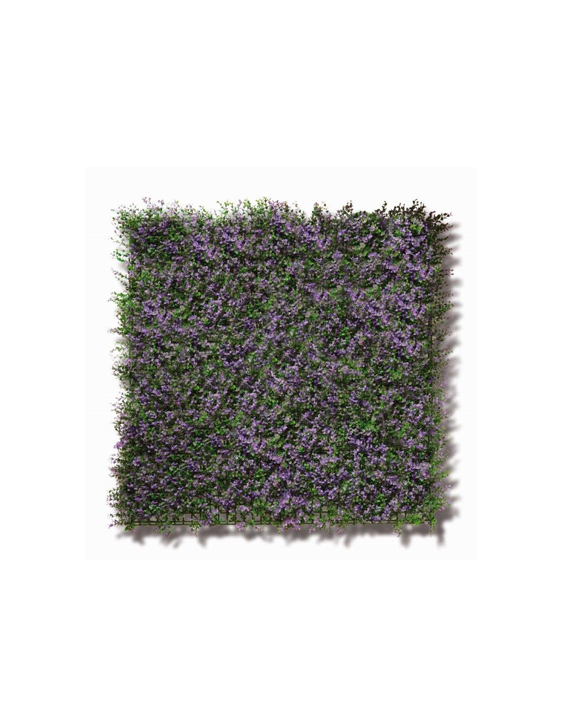 Espectacular Jardí vertical que combina el bell color verd clar de les fulles amb tons liles de les flors.