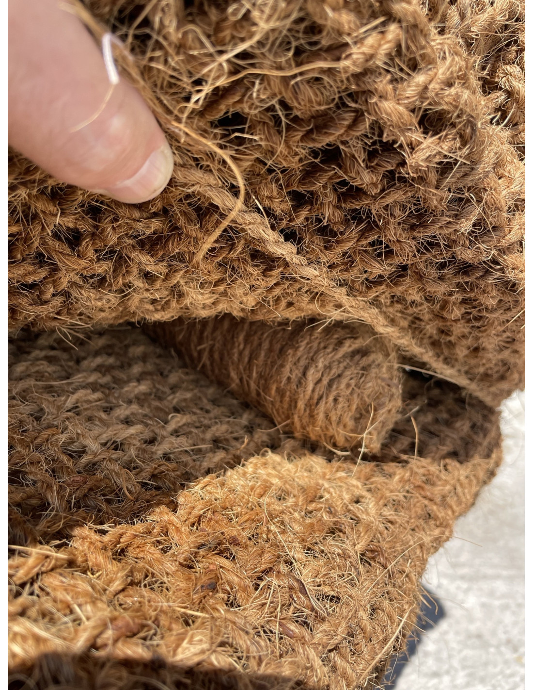 Fabricada con fibras de Coco natural sin productos químicos. Con el sol puede variar su color a mate por la cara superior pero no afecta su resistencia.