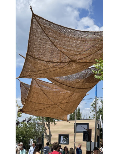 Voile d'ombrage carrée en fibre de coco, facile à suspendre.