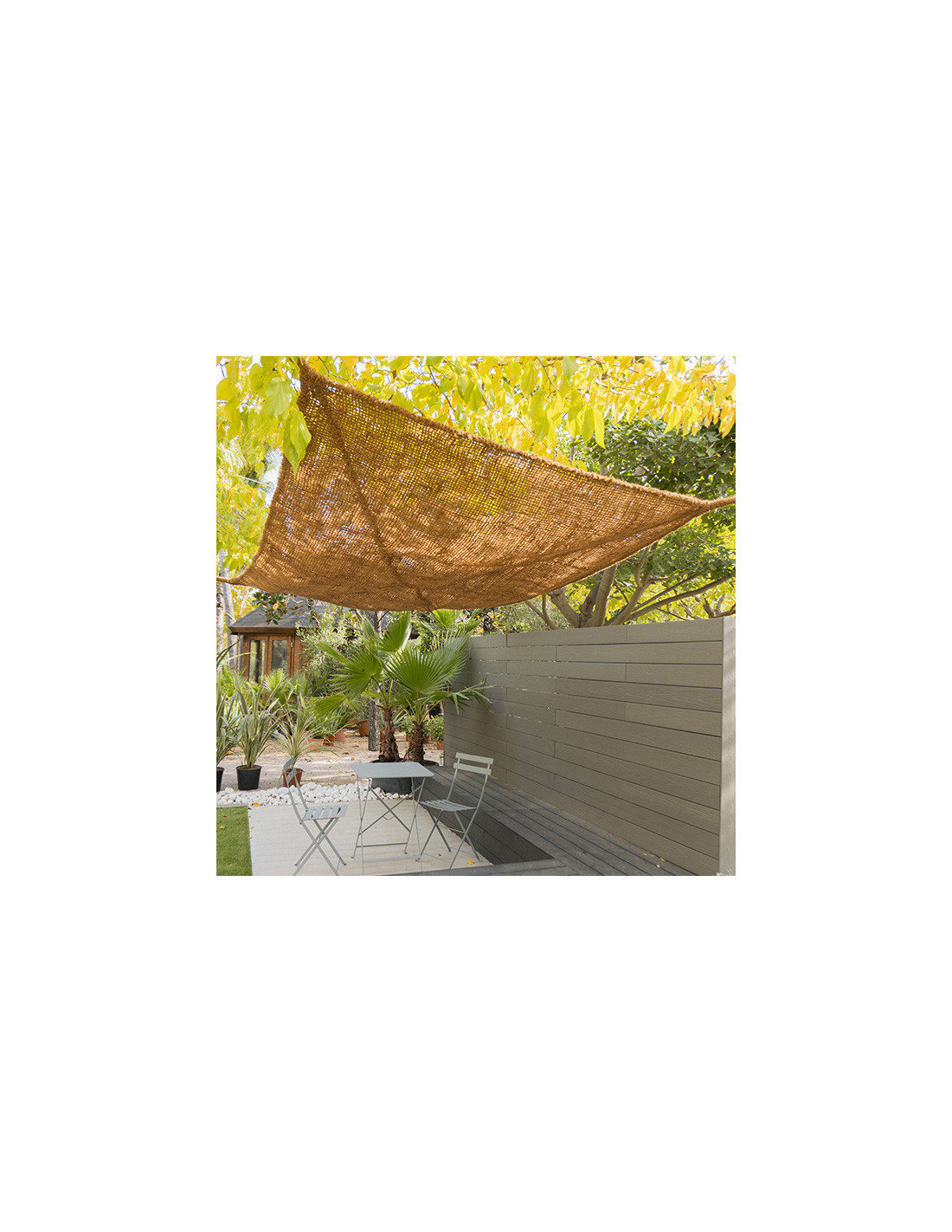 Voile d'ombrage carrée en fibre de coco, facile à suspendre.