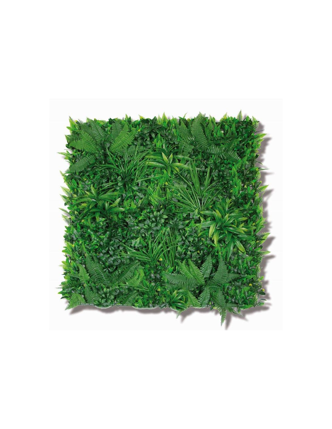 Jardin vertical 100 x 100 cm. Facile à suspendre et offrant un bel effet visuel. Un mélange de plantes artificielles à feuilles.